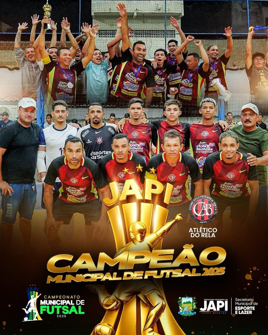 Japi vibra com o título do Atlético do Rela, grande campeão do Campeonato Municipal de Futsal 2025!