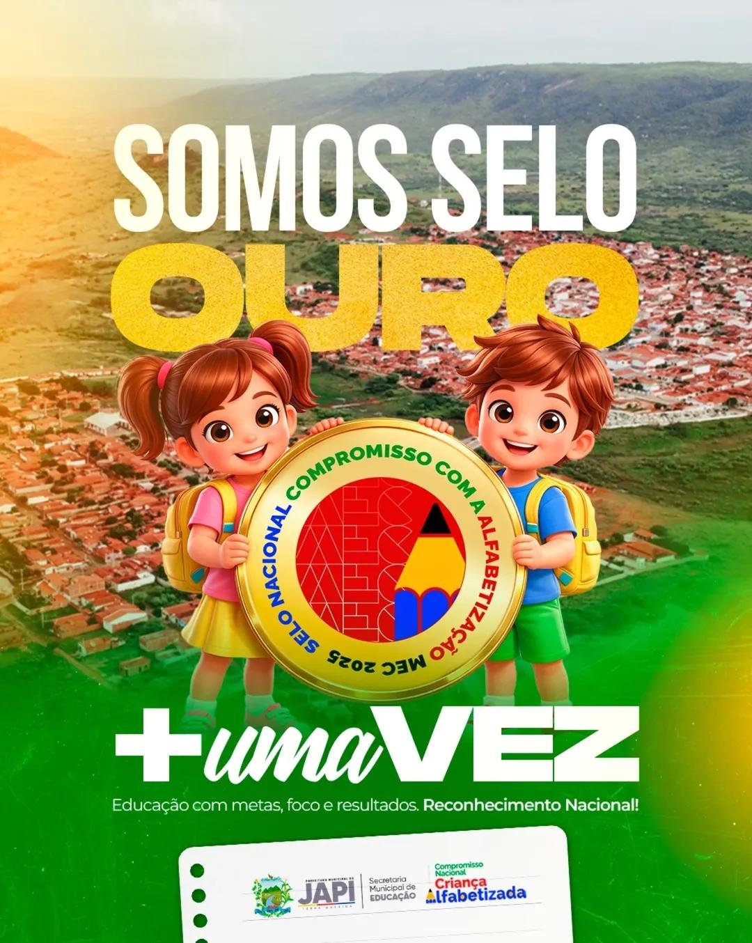 Nossa educação segue fazendo história! Pelo segundo ano consecutivo, o município de Japi é reconhecido nacionalmente com o Selo Ouro do Compromisso Nacional Criança Alfabetizada (CNCA) — resultado de um trabalho coletivo, comprometido e focado na aprendizagem das nossas crianças.