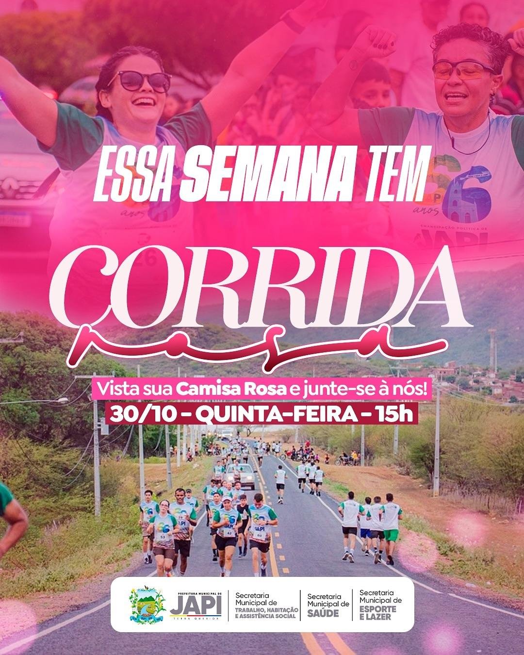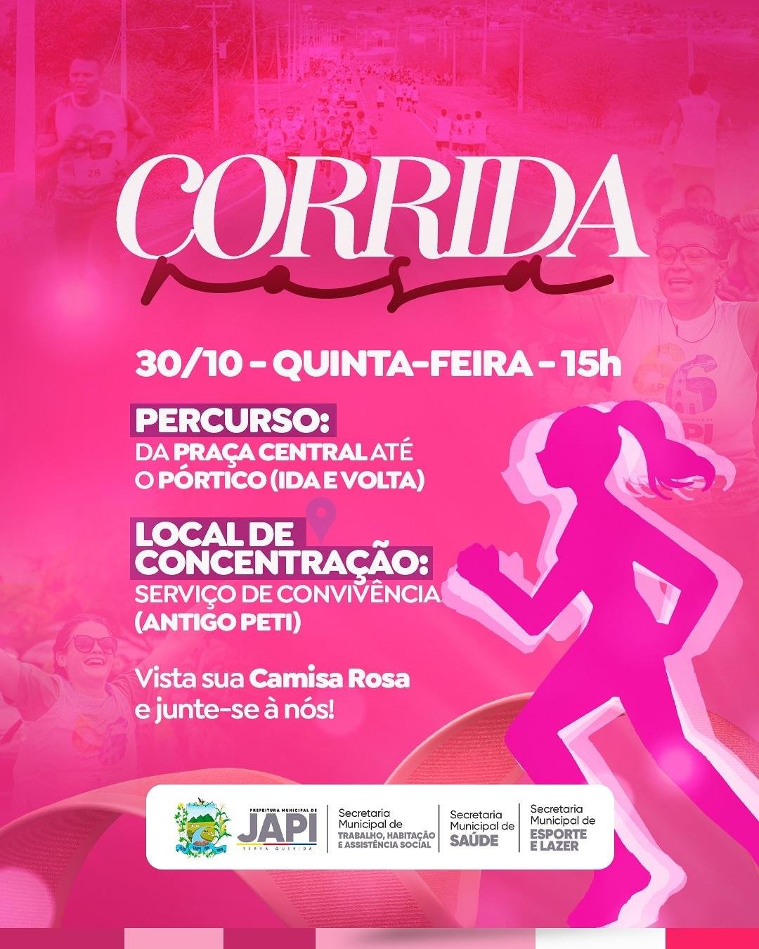 Nesta quinta-feira (30/10), às 15h, acontece a nossa Corrida Rosa, em alusão à campanha de conscientização sobre o câncer de mama.