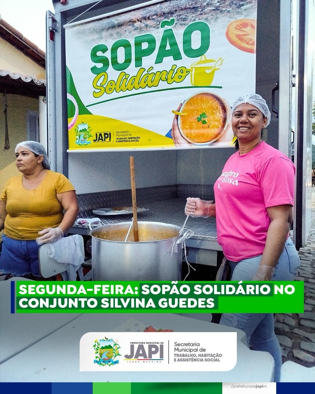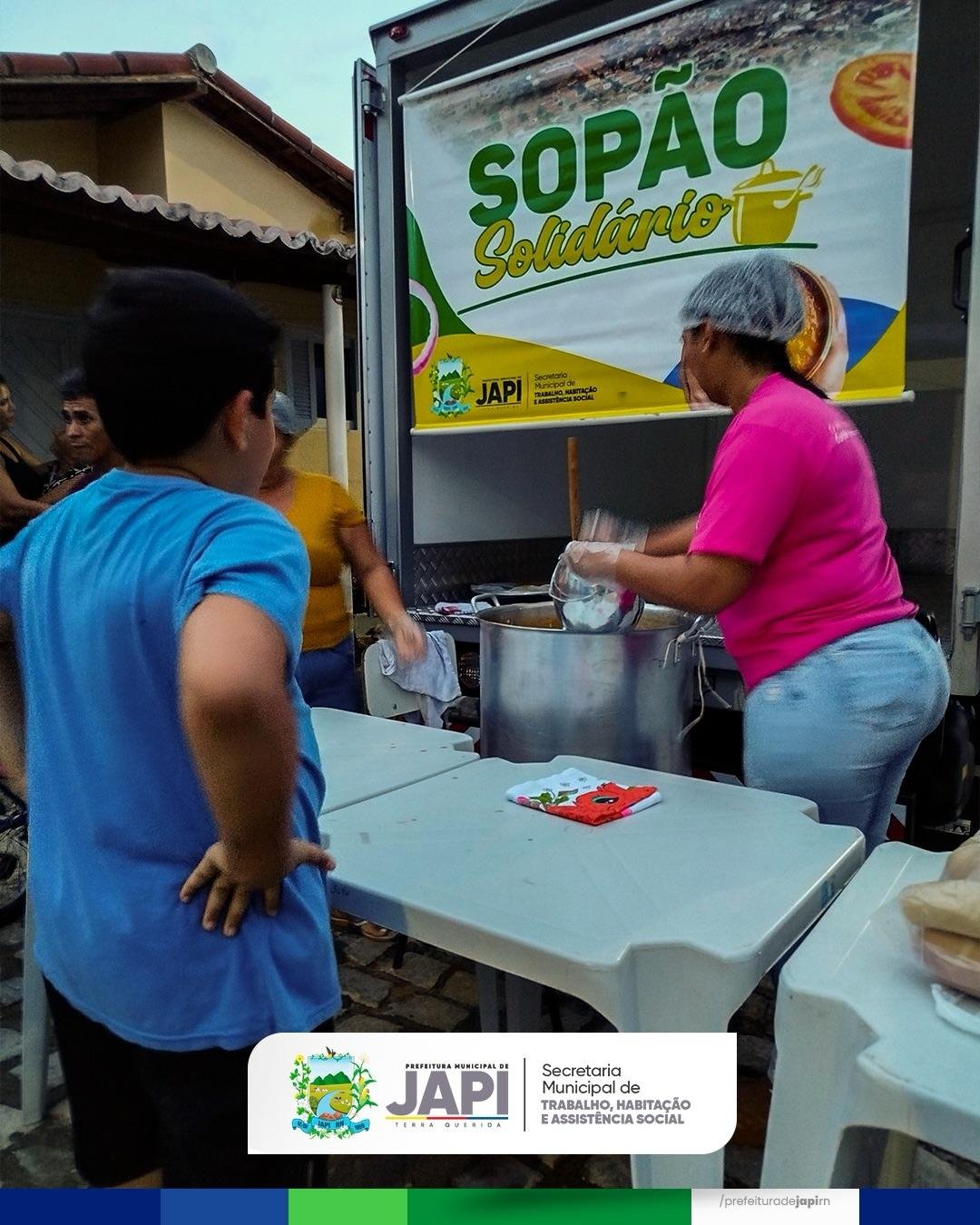 A Prefeitura de Japi, por meio da Secretaria Municipal de Assistência Social, realizou nesta segunda-feira (02) mais uma edição do Sopão Solidário no Conjunto Silvina Guedes.