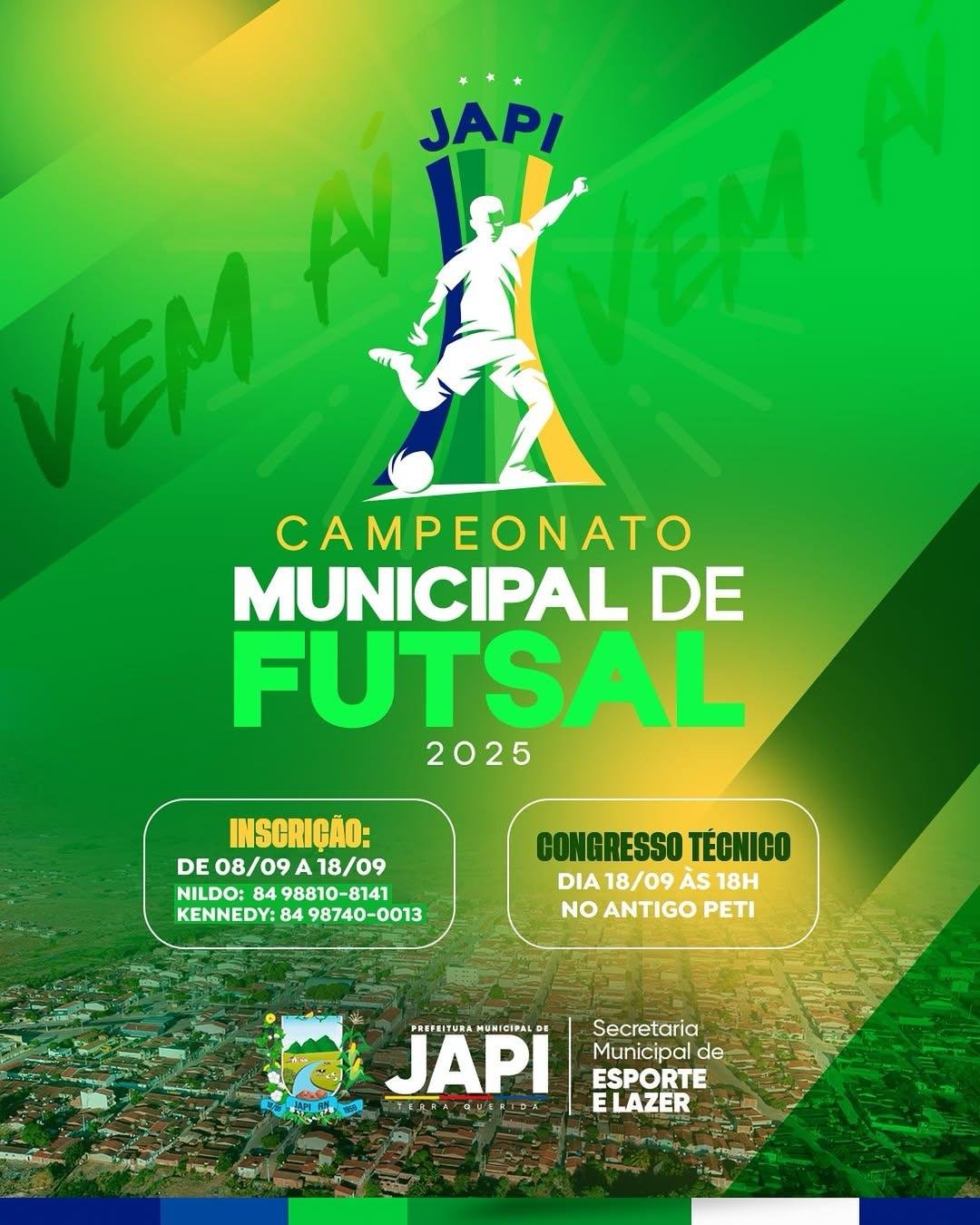 Vem aí o Campeonato Municipal de Futsal de Japi 2025, reunindo atletas, equipes e toda a torcida apaixonada pelo nosso esporte.