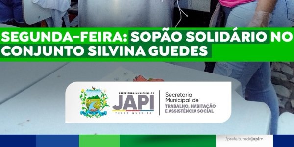 A Prefeitura de Japi, por meio da Secretaria Municipal de Assistência Social, realizou nesta segunda-feira (02) mais uma edição do Sopão Solidário no Conjunto Silvina Guedes.